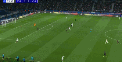 第74分钟表现不佳的切尔西门将约根森,出球失误直接被抢断,维蒂尼亚随后用一记吊射,再次攻破了蓝军的球门,大巴黎在主场重新取得了3-2的领先,虽然若昂佩德罗随后扳平比分,但越位在先进球被主裁判取消,比赛最后时刻,替补登场的克瓦拉茨赫利亚左路梅开二度,将比分定格为了5-2。